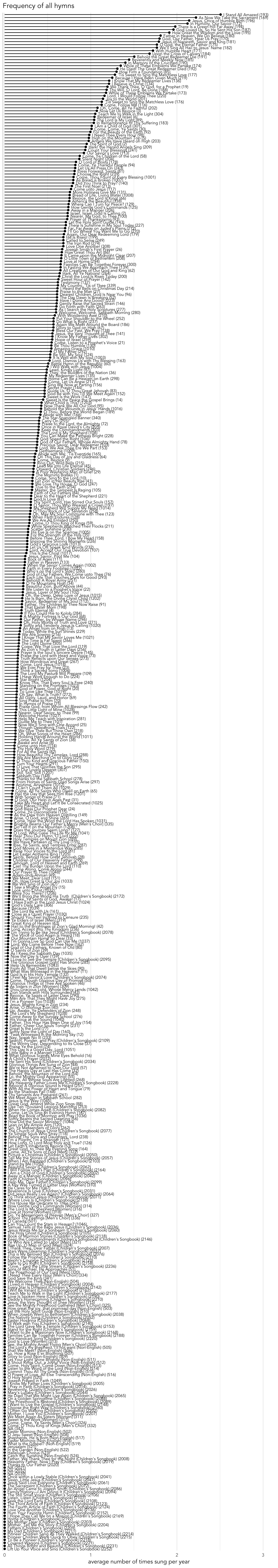 This page just has a summary of all the hymns and their frequency stats, including the new hymns. I will update this page regularly as I collect more data.